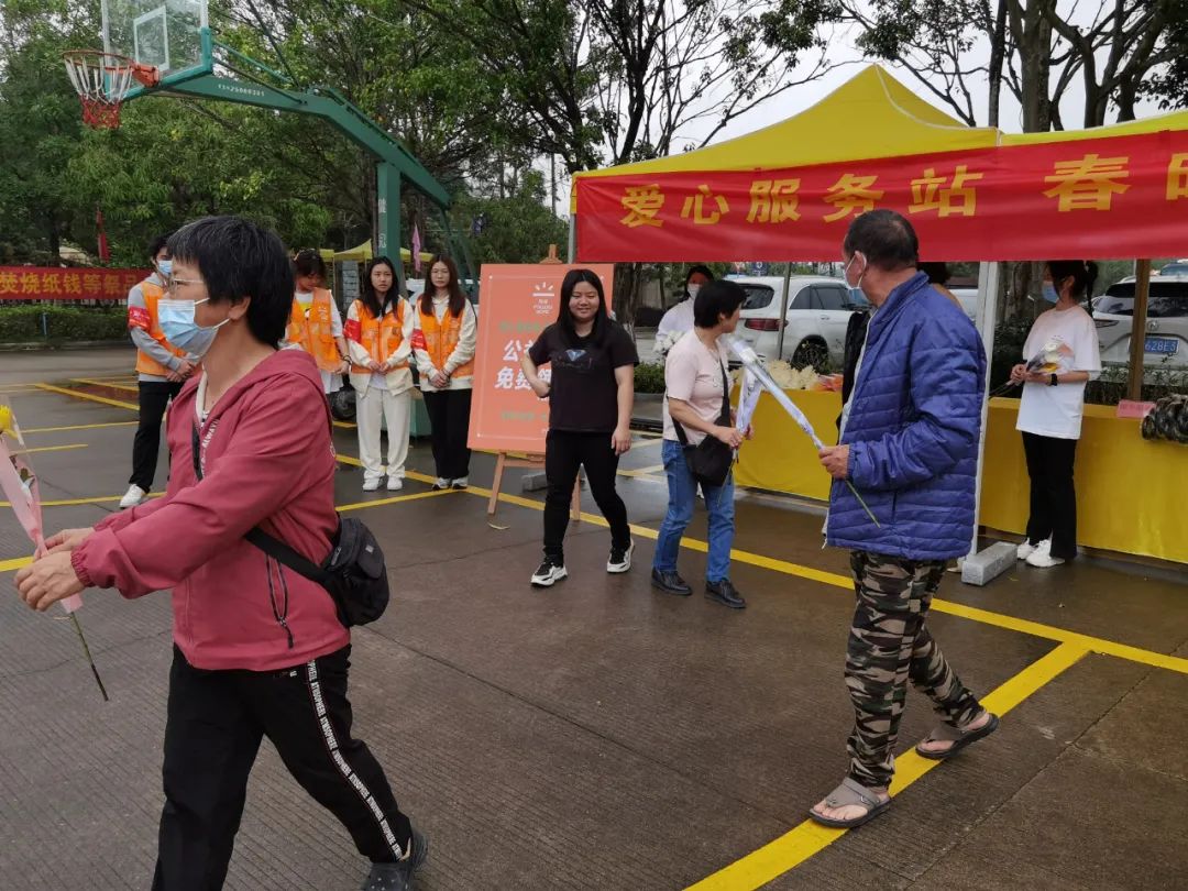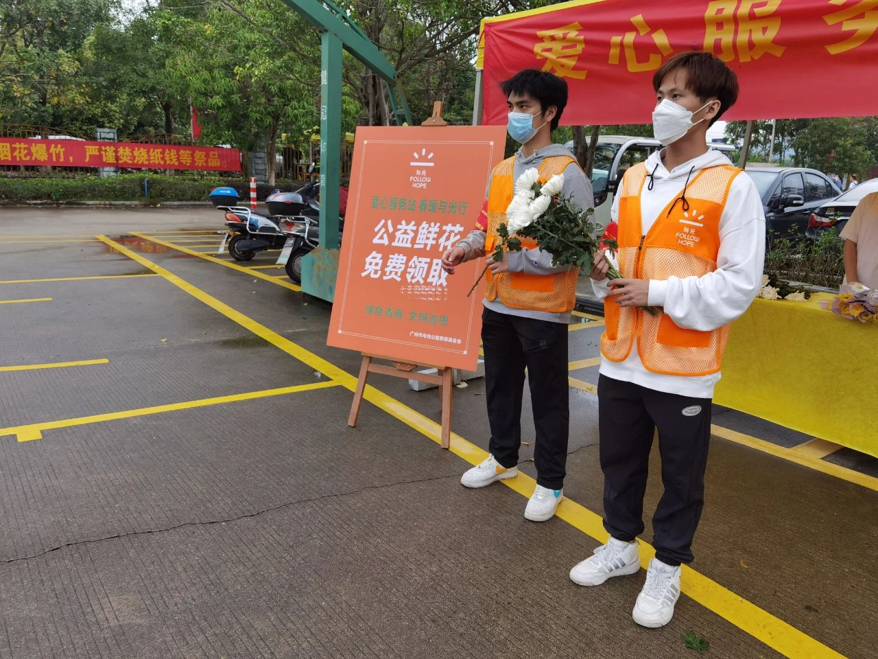 当天,广州市与光公益慈善基金会组织志愿者在万安园中搭设了临时的爱心服务站,除了提供园区的指引服务外,还向前来的市民们免费赠送鲜花用于祭奠先人,向大众传递环保祭扫,文明追思,共同维护绿色生态环境的理念,受到了市民们的高度赞扬。