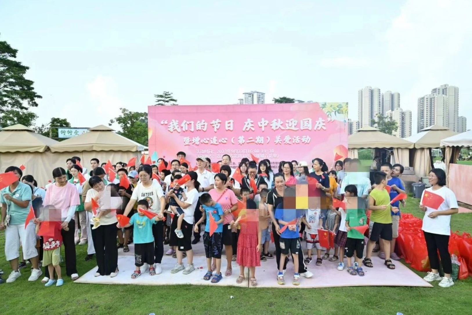在国庆、中秋双节来临之际,9月23日下午,由区总工会、区社会组织工会工作委员会、区社会组织联合会主办的“我们的节日庆中秋迎国庆”暨增心连心(第二期)关爱活动在增城百花里举办。广州市与光公益慈善基金会组织志愿者参与了活动。